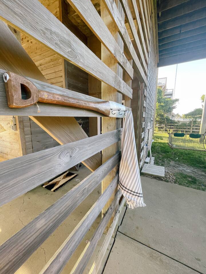 ♥ Follow us on IG! @goodhostco ♥ ✔ SLEEPING ACCOMMODATIONS We have 4 bedrooms. Main level Bedroom 1 has a king bed and private bathroom with large custom shower (2 showerheads), and private balcony. Lower level Bedroom 1 has a king bed with a private full bath and french doors to lower level deck. Lower bedroom 2 has two twin beds. Lower bedroom 3 has two bunk beds (4 beds). All but 3 of the mattresses are brand new memory foam. Each bedroom has its own 32” roku tv ✔ PARKING Parking is limited to 4 vehicle(s). Vehicles are to be parked in our driveway only. Parking on the road or grass is not permitted. Any illegally parked cars are subject to towing; applicable fines/towing fees are the sole responsibility of the vehicle owner. ✔ LUGGAGE, GROCERIES, NO PROBLEM! We have an electric lift to aid in hauling groceries and luggage up from ground level to main (3/4 bedrooms) or upper level (kitchen + main bedroom). Please respect this amenity. Absolutely, only groceries & luggage allowed on lift. Control box is on ground level, near the lift. ✔ LUXURIOUS AMENITIES *Access to some of the world’s best watersports *Restoration Hardware dining table + chairs *Restoration Hardware Sofa *Moe’s Modern Leather Sofa *Nags Head Hammocks chairs throughout *Granite counters, gas range, ss appliances *High Speed Mesh Internet Network + security first tech *Outdoor showers, swings, ✔ PROVIDED -200+mbps WIFI + Mesh Network -4 bedrooms 3 full baths (2 ensuites w/ king beds, bunkroom, and twin bedroom) -Bed linens provided, 1 starter roll of paper towels, 1 starter roll of toilet paper per bathroom, 10 bath towel sets -Private beach access -Sunroom with year round comfort -Upper & lower level decks, plus crows nest (perfect for sunsets on) -Outdoor hammock & local nags head hammock swinging chairs -Outdoor shower (hot/cold) & foot cold water faucet -Local Nags Head Hammock deck chairs -Beach cart (to help carry belongings across dune to ocean) -Skim board, boogie board -Beach chairs (6) and a few beach toys -Laundry washer/dryer -Parking for three vehicles -Propane grill -Backyard fire pit w/ fenced in backyard -Indoor and outdoor dining spaces -Propane gas grill (we will reimburse you for tank refills!) -Parking/Garage security cameras ✔ SUPPLIES PROVIDED We have stocked the cottage with many items including start-up supplies. However, you will likely need to supplement with your own during your stay. We appreciate that our guests take good care of the home we have set up, and we do ask that you use only what you need during your stay. 10 bath towel sets Bed linens 1 starter roll of paper towels 1 starter roll of toilet paper per bathroom 1 bar soap per bathroom ✔ SUPPLIES NOT PROVIDED Shampoos, toiletries, most condiments, zip locks, and coffee are not provided ✔ HOT TUB & LAWNCARE We have routine Hot Tub & Lawn maintenance at our Dune Haus. This Hot Tub maintenance is performed by Ripple Pools & Spas and lawn care by John Parker. Hot Tub maintenance usually occurs every few days to keep it balanced and lawn care every other weekend. You don't have to do anything, just a heads up that our maintenance crews might say Hello and do their thing! ✔ WATER SPORTS Salvo is one of the top kiteboarding and surfing destinations in the world! Within a one minutes drive, rent equipment at Real Watersports or Hatteras Watersports and play on the Sound side of Salvo. We love to rent jet skis, paddle board, kayak. We hope to try kitesurfing soon! You will be amazed! ✔ SAND Please use the outdoor shower (hot & cold), or the cold foot shower to rinse of sand before entering our home or entering the hot tub. ✔ ENTERTAINMENT In addition to the family room, many deck spaces, hot tub, fenced in yard, you'll find a high speed WIFI mesh network, 55" Roku TV in main living, 32” Roku TV's in all 4 bedrooms. All TVs use Roku remote as main remote. Log into your paid services. Roku guest mode will log you out of all services upon checkout date you select. ✔ GAS FIREPLACE NOT IN USE DURING SPRING/SUMMER MONTHS (May - August). There is a switch to the left side of the fireplace (stone nearest window). This will turn fireplace on/off. Please only run when sitting around the fire in the family room. The fireplace will generate a lot of heat. Guests may use the indoor gas fireplace if they certify that they will do so safely and will be responsible for any damage due to its use or misuse. Again, this will only be available during non-spring/summer months. ✔ OUTDOOR FIRE PIT If you plan to use the outdoor firepit, please do so with care and caution. Keep logs within stone pit and do not fill wood above the stones. No oversized fires are allowed and fires outside of the firepit are strictly prohibited. ✔ DINING EXPERIENCE Table for 8, bar for 3... ✔ IN THE YARD We have a fenced in space with gate that leads to the dunes and beach access. There is a firepit, game area, swinging chairs, outdoor shower, and closet for our beach accessories. ✔ BEACH ACCESSORIES We provide a beach cart to help carry belongings across dunes to beach/ocean. Please ensure you put our beach cart back in the garage closet when you are done with it. If it’s lost or stolen you will be responsible for replacement. We also provide beach chairs and some toys. ✔ BEACH CONDITIONS Please reference the following site for rip current conditions, etc. lovethebeachrespecttheocean dot com ✔ HEAT / AC Guests, please do not turn A/C lower than 72 or Heat higher than 70. This can cause Heat pump type systems to freeze up. There are two thermostats, one upstairs and one downstairs. To operate the thermostats, please drag either the cold or hot circle up/down. Note: with the wall of windows, in the summer months, the morning sun will warm the family room so that the upper thermostat may not keep up. Setting it lower will not make a difference. If it is a problem for you, you may shut all blinds, shut the sunroom door, and turn down the l
