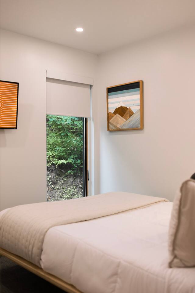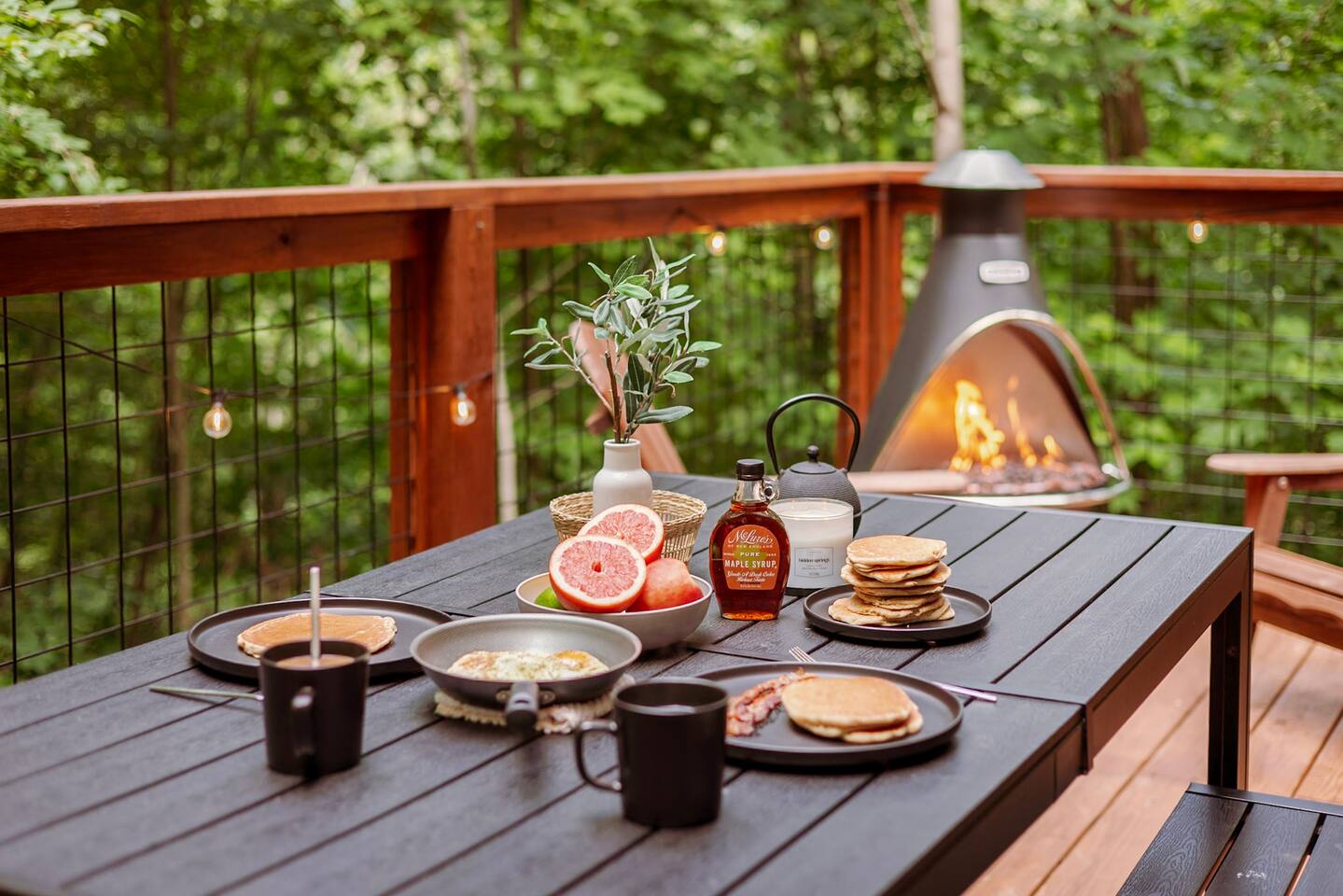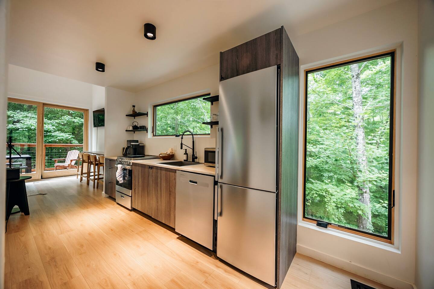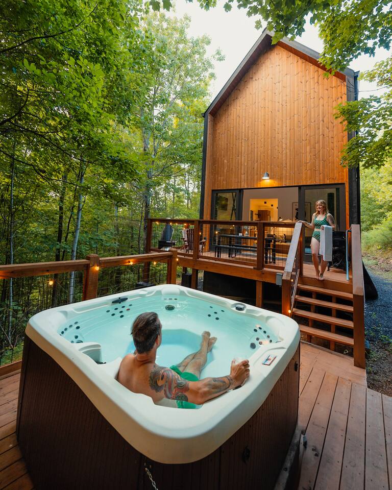 ♥ Follow us on IG! @goodhostco ♥ Our nordic inspired modern cabin includes 2 bedrooms and 2 full bathrooms, private deck, hot tub, and propane fire pit. Wake up to the sun rising and seasonal mountain views out of our wall of windows and vaulted ceiling! Home is located in a private, and peaceful natural setting. We do have neighbors. Lots around us are approximately ⅓ of an acre. Please respect our neighbors and everyone will have a good time and create memories for a lifetime! ✔ Level 1 - Lower level Bedroom #1 includes a 40” roku TV and window. This level also includes a full bathroom, dining bar w/ windows, and kitchen. Sofa with Mid Century Modern electric fireplace and Marshall Bluetooth speaker. ✔ Level 2 - Main Bedroom with King sized bed, 50” roku TV, full bathroom, and dedicated working space with SpaceX Starlink satellite internet. This level also includes our laundry closet. Inside the laundry closet you will find two fold-up twin-sized floor mattresses. These beds can be used for children within our main suite. Please note that with the two fold-up beds out, it may feel like a tight space. ✔ Outdoor Space - In Front: parking for two vehicles. In Back: deck with picnic-style table, chiminea propane fire pit, hot tub, and chairs. We can sleep up to 6 comfortably. Please message us before booking if you have more than 4 adults (just want to ensure you’re comfortable with our sleeping accommodations as the two fold-up twin floor mattresses are intended for children). HIGHLIGHTS ♥ Owner Operated - Superhost & Premier Host ♥ Self check-in with smart lock ♥ Picturesque setting ♥ Security first elements throughout ♥ Memory foam mattresses throughout ♥ SpaceX Starlink Satellite Internet w/ mesh network ♥ Air conditioning and heat. ♥ Starter supplies only. ♥ Reasonable check-out asks (start dishwasher, bag up trash) CONSIDERATIONS ➜ We do currently allow up to 2 small-medium pet dogs. The pet fee is $150, and we ask that pets are housebroken, kept off and won't chew furniture, leashed when outside, picked up after, and not left unattended in the cabin unless crated. You need to select pets on your reservation and then you will be shown the pet fee. ➜ Although all-wheel drive vehicles are not often required, we do like to recommend all wheel drive when coming to any Mountainous area. ➜ You will likely see and hear animals, critters and insects. Bears are frequently seen within the Smoky Mountain community. Please follow bear safety guidelines, such as keeping food locked up at all times.* ➜ No Refunds for weather, power outages, or other incidents outside of our control. We do recommend our guests consider trip insurance. ➜ We have stocked the cabin with many items including start-up supplies. However, you will likely need to supplement with your own during your stay. We appreciate that our guests take good care of the home we have set up, and we do ask that you use only what you need during your stay. ➜ We are so happy that you are considering staying in our cabin. We do appreciate all feedback! ♥ Britt & Alex (Owners / Operators)