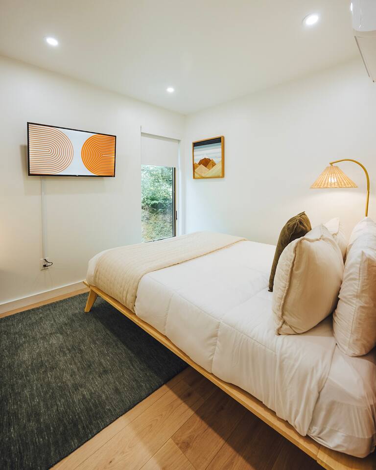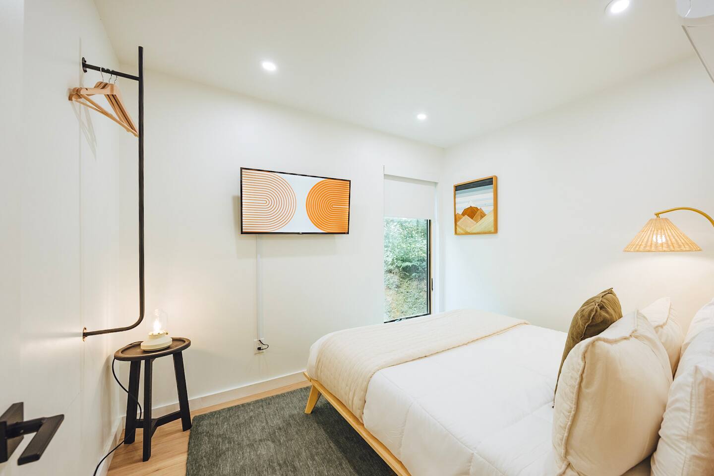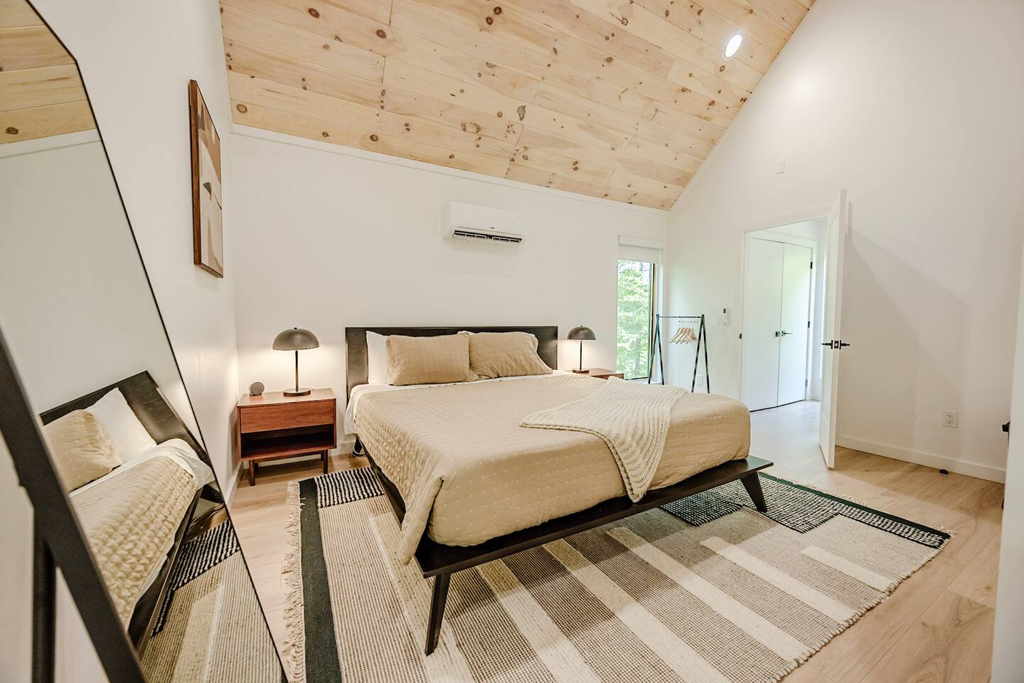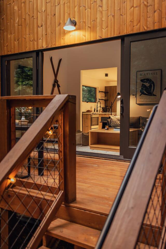 ♥ Follow us on IG! @goodhostco ♥ Our nordic inspired modern cabin includes 2 bedrooms and 2 full bathrooms, private deck, hot tub, and propane fire pit. Wake up to the sun rising and seasonal mountain views out of our wall of windows and vaulted ceiling! Home is located in a private, and peaceful natural setting. We do have neighbors. Lots around us are approximately ⅓ of an acre. Please respect our neighbors and everyone will have a good time and create memories for a lifetime! ✔ Level 1 - Lower level Bedroom #1 includes a 40” roku TV and window. This level also includes a full bathroom, dining bar w/ windows, and kitchen. Sofa with Mid Century Modern electric fireplace and Marshall Bluetooth speaker. ✔ Level 2 - Main Bedroom with King sized bed, 50” roku TV, full bathroom, and dedicated working space with SpaceX Starlink satellite internet. This level also includes our laundry closet. Inside the laundry closet you will find two fold-up twin-sized floor mattresses. These beds can be used for children within our main suite. Please note that with the two fold-up beds out, it may feel like a tight space. ✔ Outdoor Space - In Front: parking for two vehicles. In Back: deck with picnic-style table, chiminea propane fire pit, hot tub, and chairs. We can sleep up to 6 comfortably. Please message us before booking if you have more than 4 adults (just want to ensure you’re comfortable with our sleeping accommodations as the two fold-up twin floor mattresses are intended for children). HIGHLIGHTS ♥ Owner Operated - Superhost & Premier Host ♥ Self check-in with smart lock ♥ Picturesque setting ♥ Security first elements throughout ♥ Memory foam mattresses throughout ♥ SpaceX Starlink Satellite Internet w/ mesh network ♥ Air conditioning and heat. ♥ Starter supplies only. ♥ Reasonable check-out asks (start dishwasher, bag up trash) CONSIDERATIONS ➜ We do currently allow up to 2 small-medium pet dogs. The pet fee is $150, and we ask that pets are housebroken, kept off and won't chew furniture, leashed when outside, picked up after, and not left unattended in the cabin unless crated. You need to select pets on your reservation and then you will be shown the pet fee. ➜ Although all-wheel drive vehicles are not often required, we do like to recommend all wheel drive when coming to any Mountainous area. ➜ You will likely see and hear animals, critters and insects. Bears are frequently seen within the Smoky Mountain community. Please follow bear safety guidelines, such as keeping food locked up at all times.* ➜ No Refunds for weather, power outages, or other incidents outside of our control. We do recommend our guests consider trip insurance. ➜ We have stocked the cabin with many items including start-up supplies. However, you will likely need to supplement with your own during your stay. We appreciate that our guests take good care of the home we have set up, and we do ask that you use only what you need during your stay. ➜ We are so happy that you are considering staying in our cabin. We do appreciate all feedback! ♥ Britt & Alex (Owners / Operators)